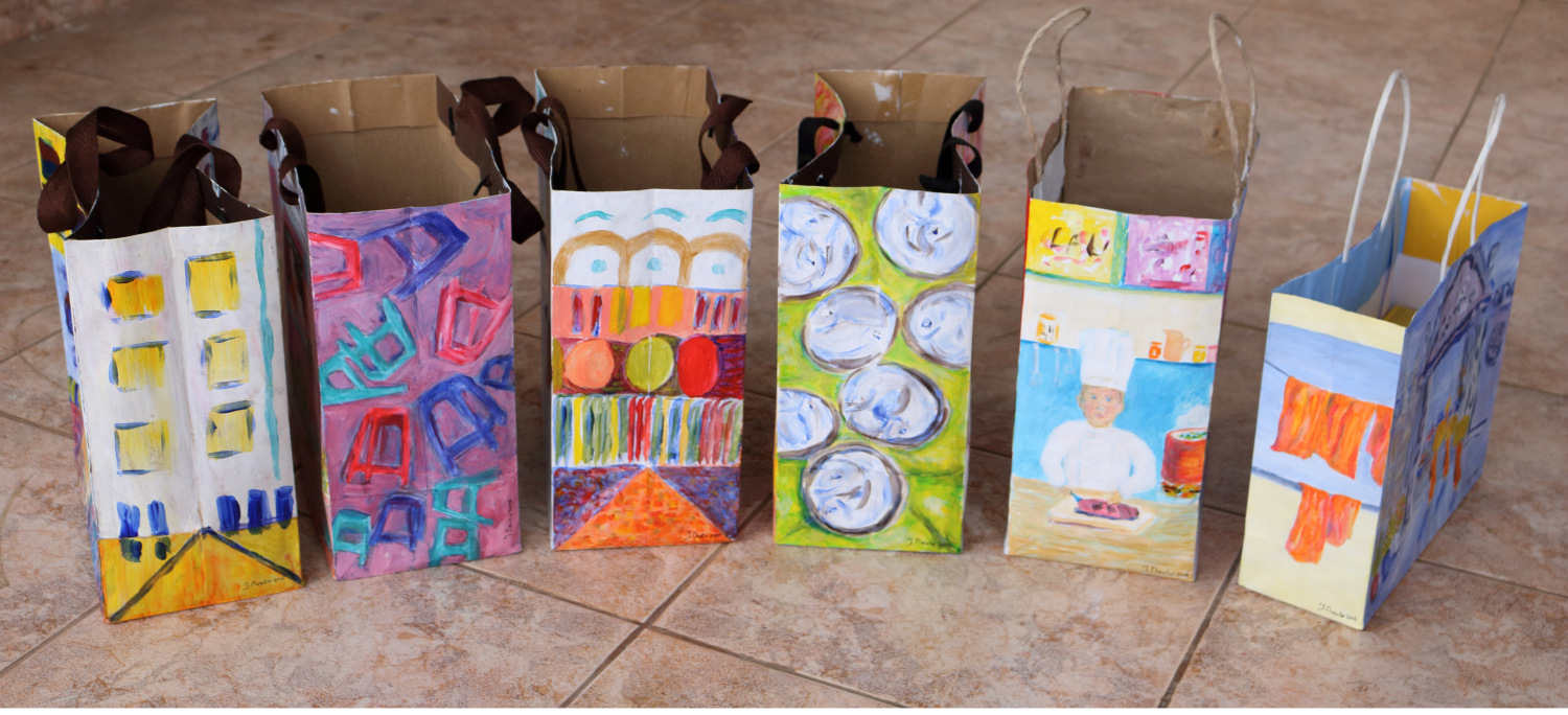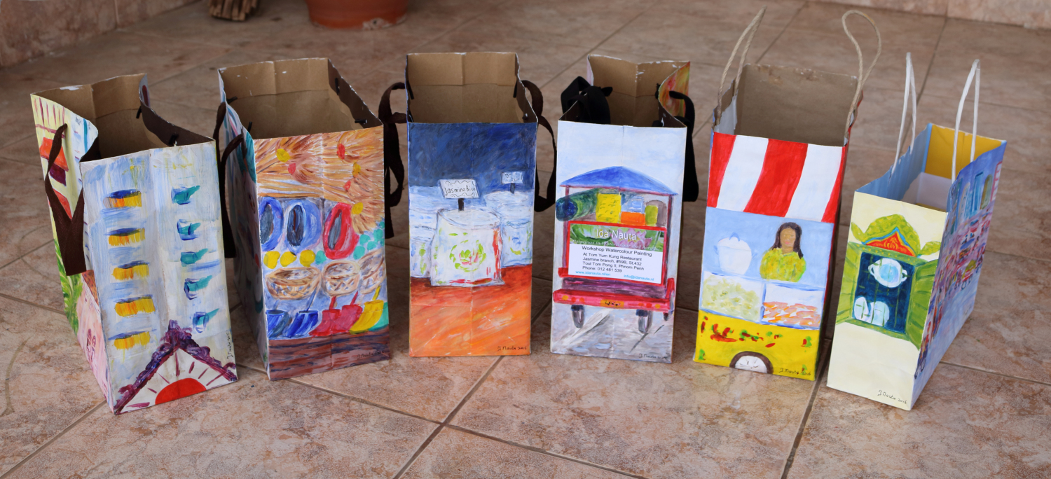 In 2016 woonde ik vijf maanden in Cambodja. Ik startte mijn Art Bag Project en exposeerde in de hoofdstad Phnom Penh. Het thema is “de Kloof tussen arm en rijk”. Ik creëerde Art Bags uit papieren draagtassen, waarbij alle vijf zijden beschilderd werden. Elke Art Bag heeft een eigen verhaal.